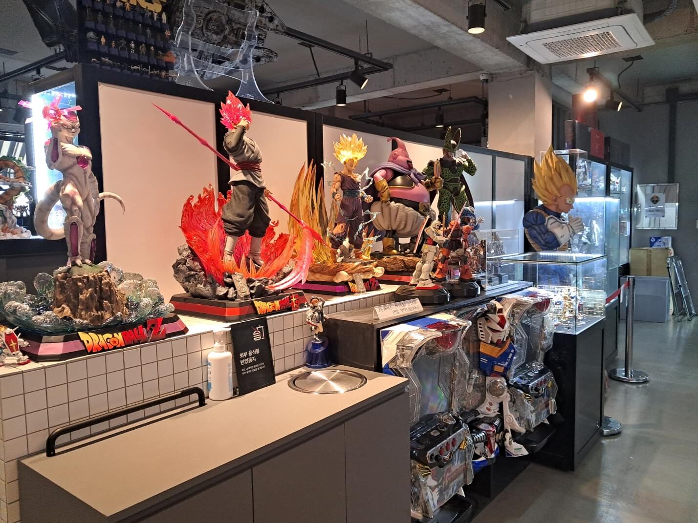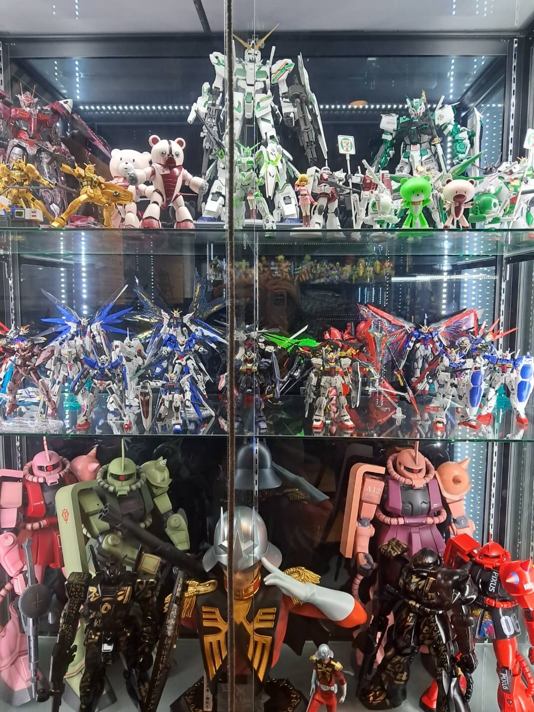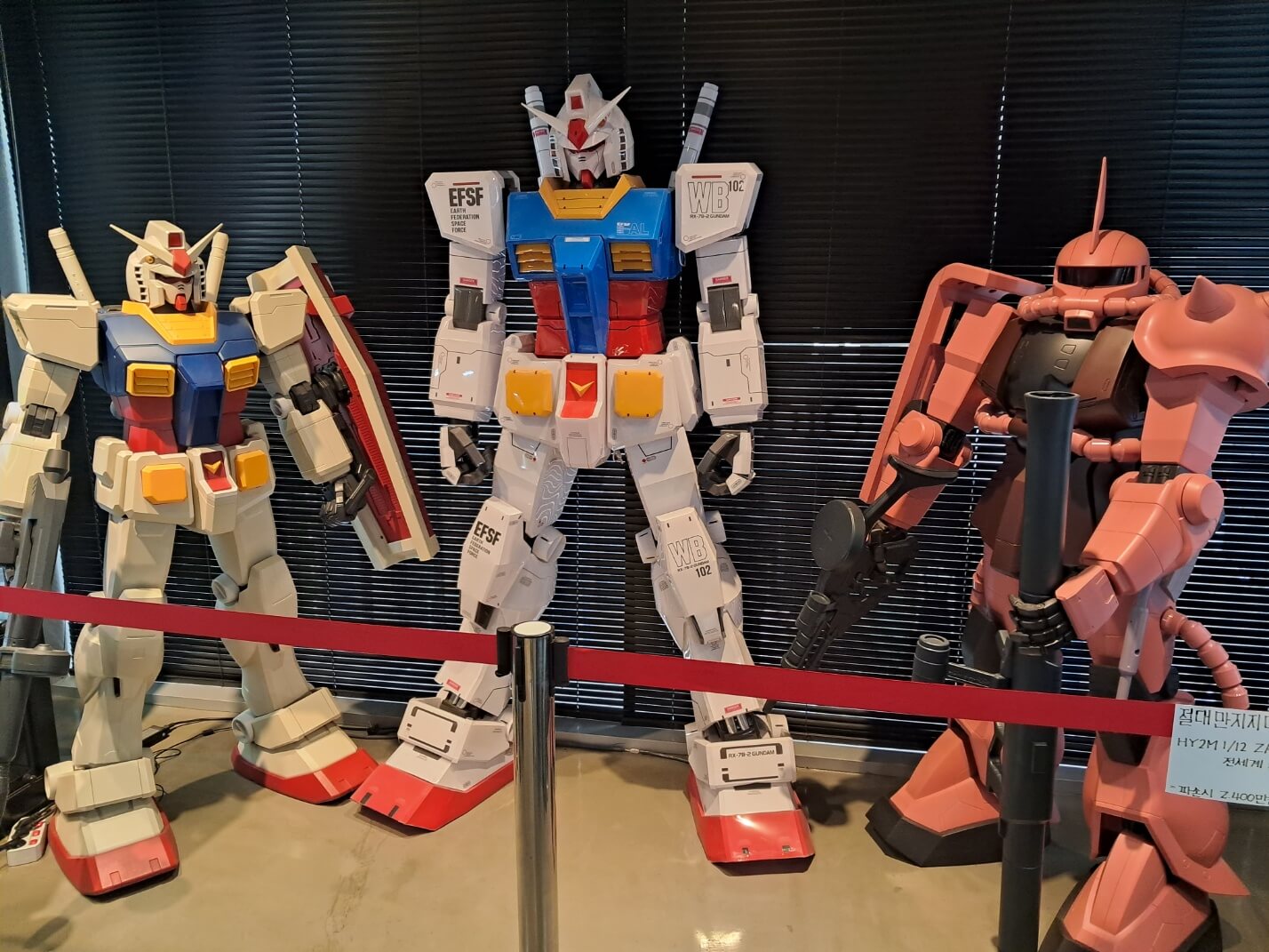 건담카페 지베이스의 다양한 건담과 캐릭터들